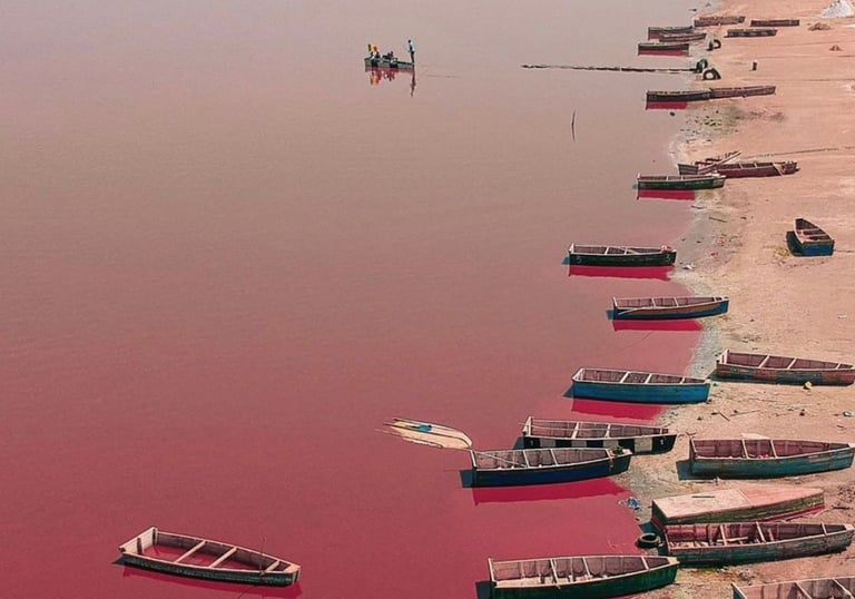 À quelques kilomètres de Dakar, le Lac Rose fascine par sa couleur unique due aux micro-organismes et au sel. Célèbre pour ses paysages saisissants et ses traditions de récolte de sel, c’est une étape incontournable entre nature, découverte et authenticité sénégalaise.